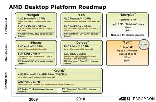 785G和880G搭配的是Propus核心(四核)、Rana核心(三核)以及Regor核心(雙核)的速龍II處理器,而890GX所搭配的是Deneb核心(四核)、Heka核心(三核)以及Thuban核心(六核)的弈龍II處理器。