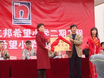 立邦(中國(guó))有限公司再度讓一所希望小學(xué)注入彩色的夢(mèng)想。2008年10月20日,立邦公司在山西捐建的一所希望小學(xué)二期彩色希望小學(xué)工程竣工。上午九點(diǎn),在雄壯的國(guó)歌聲中,立邦太谷希望小學(xué)二期工程暨彩色希望小學(xué)落成儀式正式開(kāi)始。立邦公司領(lǐng)導(dǎo)同太谷縣副縣長(zhǎng)、太谷教育局局長(zhǎng)及河?xùn)|鄉(xiāng)書(shū)記、希望辦的領(lǐng)導(dǎo)一起,為其揭牌并參加當(dāng)天舉行的立邦捐贈(zèng)儀式,并參觀校園文化藝術(shù)節(jié)作品、觀看師生表演。