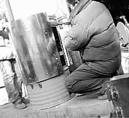 昨天(12月24日),記者來到天橋區(qū)臧家屯小區(qū)附近,一條街旁有幾家加工鐵爐子的業(yè)戶,其中一家業(yè)戶前擺著一些大鐵桶,業(yè)戶在一個藍色的大鐵桶前忙活著。記者走近一看,業(yè)戶在加工地瓜烤爐,他給藍色的大鐵桶包上半米高的白色鐵皮。“你這里加工地瓜烤爐嗎?多少錢一個?”記者問!300多元一個。”業(yè)戶指著正在加工的大鐵桶說,“這個烤爐已經(jīng)有人買了,你如果想要烤爐,先挑個鐵桶吧。”