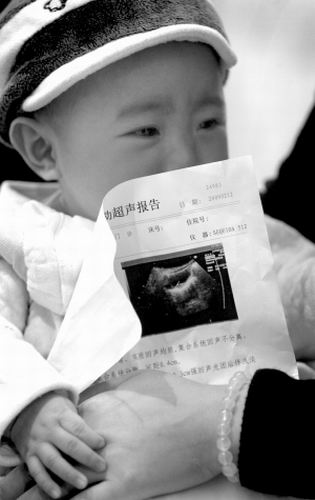 昨日下午,看到新聞報(bào)道,楊麗和丈夫也急忙將兒子帶到醫(yī)院做了彩超檢查。檢查結(jié)果顯示,孩子的左輸尿管下端有一個(gè)0.2cm×0.3cm的小結(jié)石。