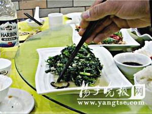 昨天傍晚,溫州人沙先生帶老鄉(xiāng)來到南京建康路附近一家飯店吃飯,飯吃到一半竟發(fā)現(xiàn)炒菠菜里有一條焦黑的蚯蚓,沙先生報了警。