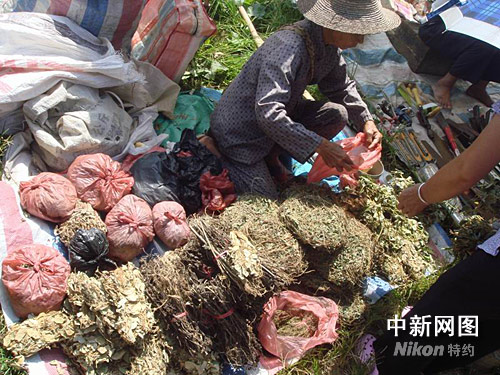 圖為“怪墟”上擺賣的中草藥