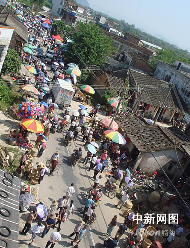當?shù)剜l(xiāng)鎮(zhèn)有關(guān)官員稱,今天前來趕集的人數(shù)在三萬以上。幾十年來,到“怪墟”走走已成為當?shù)啬酥林苓叺貐^(qū)部門群眾歡度重陽的一大亮點。
