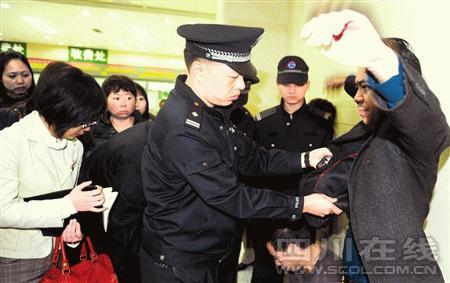 昨天(10月21日)清晨6點,華西醫(yī)院門診一樓掛號窗口前,四名小伙子密切注視著人群中來回走動的“號串串”,經(jīng)過一個小時的暗訪取證之后,清晨7點,四名小伙子全部現(xiàn)身,聯(lián)合武侯公安分局玉林派出所的13名警察,揪出了混在人群中的7名“號串串”,原來他們是便衣警察,已經(jīng)在華西醫(yī)院門診部潛伏多日。據(jù)了解,這是華西醫(yī)院、武侯公安聯(lián)合進行的整治“號串串”行動。