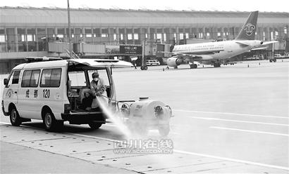 “4月30日起,四川機場集團就已按照民航總局的通知啟動預(yù)防預(yù)案,并發(fā)布工作流程。可以說雙流機場的防疫布控工作已經(jīng)在有序地進行中。”雙流機場辦公室主任余吟波介紹,整個機場集團成立了6個特別小組,包括排查組、現(xiàn)場體溫檢測組、物資保障組、消毒組、信息組以及轉(zhuǎn)運組。