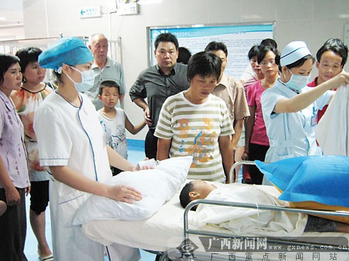 因孩子們病情危重,衛(wèi)生院一邊搶救一邊向上級(jí)醫(yī)院求援。貴港市人民醫(yī)院接報(bào)后馬上派出救護(hù)隊(duì)趕到平悅衛(wèi)生院,但一名重癥幼兒因搶救無(wú)效死亡,救護(hù)隊(duì)將其他20名中毒者接回醫(yī)院搶救。