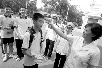 昨天上午,市衛(wèi)生局、市愛衛(wèi)會(huì)等部門負(fù)責(zé)人來到崇文區(qū)匯文中學(xué)進(jìn)行抽查。8時(shí)許,隨著學(xué)生入校高峰的到來,校門口處的值勤老師手持著紅外體溫測(cè)試儀,逐一對(duì)每名進(jìn)校人員進(jìn)行體溫檢查。