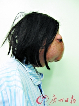 “活檢結(jié)果還沒出來,基本確定是‘骨纖維異常增殖癥’,其實也就是她的顱腦內(nèi)、頜面部有著巨大腫瘤!绷钨F清教授表示,她的腫瘤與頭部等大,雖然呈良性無礙生命,但嚴重影響其生活。