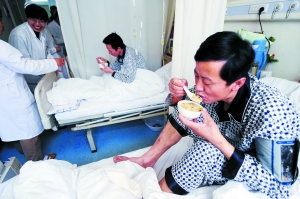 孫萍表示,病人的恢復(fù)進(jìn)程較快。6日,為了促進(jìn)消化,他們的食物以“湯水”等流質(zhì)為主;7日午飯時(shí),醫(yī)生就開始為部分病人喂食湯面等半流質(zhì)食物。為了增加營養(yǎng),加快身體恢復(fù),醫(yī)生對他們實(shí)行“一日七餐制”。