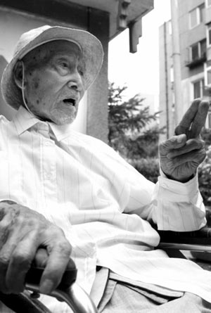 老人最喜歡吃的食品有牛奶、雞蛋、地瓜、香蕉、餃子、紅燒肉等。他從年輕時(shí)候起飯量就不大,從不暴飲暴食,現(xiàn)在每餐也只吃七八分飽,最喜歡的紅燒肉和餃子,也只吃五六口。社區(qū)醫(yī)院每月都來(lái)給老人檢查身體,老人各項(xiàng)指標(biāo)均正常,沒(méi)住過(guò)醫(yī)院,感冒發(fā)燒都極少。前幾天高溫,老人患了肺內(nèi)感染,也只打了3天吊瓶,多打一天他都不讓?zhuān)覉?jiān)決不吃藥,他說(shuō)“是藥三分毒”。老人滿(mǎn)口假牙,吃飯時(shí)飯菜必須軟爛;眼睛有些花,報(bào)紙上的大字還能看清;一只耳朵失聰,另一只耳朵有點(diǎn)背,跟他說(shuō)話得大點(diǎn)兒聲。