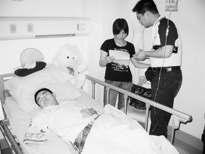 昨(2)日,記者來(lái)到位于成都的四川大學(xué)華西醫(yī)院,向“可樂(lè)男孩”薛梟轉(zhuǎn)交全國(guó)網(wǎng)友鼓勵(lì)信件。主治醫(yī)生項(xiàng)舟教授說(shuō),薛梟身體恢復(fù)不錯(cuò),已可以獨(dú)立下床扶著床邊行走。
