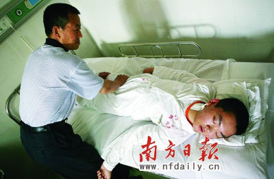 1994年,從兒子在卡車上摔下癱瘓那一天起,黑龍江伊春市湯旺河區(qū)二清河林場(chǎng)的丁國(guó)福就開(kāi)始了漫長(zhǎng)的奔波。為了讓兒子早日站起來(lái),丁國(guó)福不惜傾家蕩產(chǎn),甚至當(dāng)乞丐。昨日,人稱“丁百萬(wàn)”的丁國(guó)福帶著兒子來(lái)到廣州解放軍四二一醫(yī)院求醫(yī)。