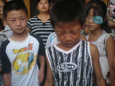 記者發(fā)現(xiàn),和小聰同班補習的還有12名小朋友,他們都被帶到昌大二附院眼科就診。這些小孩中有7名男生,其中小聰?shù)那樾巫顬閲乐兀?名小女孩的癥狀較輕。