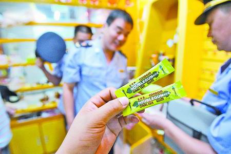 但面對(duì)詢問,該店店長(zhǎng)稱老板在外地,相關(guān)手續(xù)可能還未辦理。最后,執(zhí)法人員將該店的安全套用品全部暫扣。(記者李 巖 實(shí)習(xí)生 齊葉帆文 記者許俊文 圖)