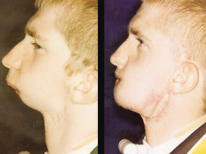愛爾蘭少年艾倫·多爾蒂今年18歲,他患有一種罕見先天畸形,生來沒有下巴。從去年開始,多爾蒂做了多次手術(shù)。美國媒體27日報(bào)道,紐約的醫(yī)生本星期為他做了最后一次手術(shù),完成了為他制造下巴的艱巨工程。