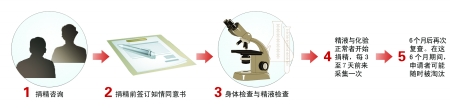 體檢全部過關(guān)后,每個志愿者每隔3~5天,到精子庫通過自慰,采集一次精液,需要3~4次。采集完畢的精液,經(jīng)過處理后,被貯存到液態(tài)氮中,以最后一次采集時間為起點,半年以后,還要對捐獻者再次進行血液檢查,確認沒有感染艾滋病毒,該志愿者的精液將最后打上“合格”標簽,進行冷凍保存。