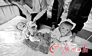 兩個(gè)“腎結(jié)石”寶寶正在醫(yī)院接受治療。