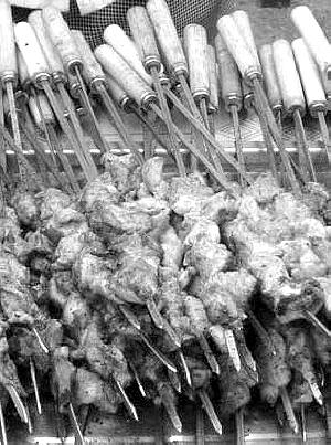 “一些燒烤店賣的羊肉串有一部分是豬肉的,只不過是用了一種叫‘羊肉精’的調(diào)料‘拌’的,用這種‘羊肉精’浸泡過的豬肉帶有羊肉味。制作過程中也有很多貓膩兒。要選肥瘦相間的豬肉,因?yàn)檫@樣的豬肉和羊肉外觀比較相似,吃起來比較香,口感也好。把原料切成小方塊,每一塊都要肥瘦兼顧,拌入十多種作料后,就制成了‘羊肉串’。”這名廚師說。