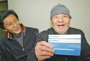 重慶晨報(bào)21日刊登的張治欽拿著存折的照片。(資料圖片) 記者 羅偉 攝