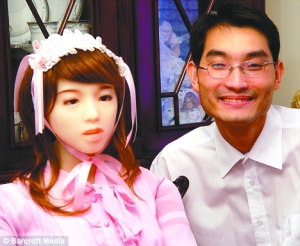 勒同(右)沒(méi)時(shí)間談戀愛(ài),卻花盡積蓄造出機(jī)器人當(dāng)女友。
