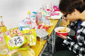 學生小江寧愿在宿舍吃泡面也不想去飯?zhí)贸燥。信息時報記者 葉偉報 攝