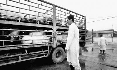 在廣州,調(diào)入生豬時,需要有生豬產(chǎn)地農(nóng)業(yè)主管部門出具的檢驗報告書;到了交易市場,需要接受動物檢疫部門的抽檢;在肉聯(lián)廠或者屠宰廠,工作人員要提取尿樣檢測,主管單位則是質(zhì)檢和工商部門;市場上豬肉的檢測,則由動物檢疫部門負(fù)責(zé)。