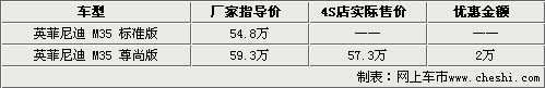 目前,英菲尼迪4S店內(nèi)老款M還有部分車型在銷售,09款M車型要到4月底才會到店,現(xiàn)已全面開始接受預(yù)定,訂金5萬元。銷售人員還表示,現(xiàn)在老款M35正在降價(jià)促銷,消費(fèi)者目前購車除了可以得到2萬元的現(xiàn)金優(yōu)惠外,還可以得到商家贈送的原廠汽車裝飾,只是在車型顏色方面較少,主要以銀色車型為主。