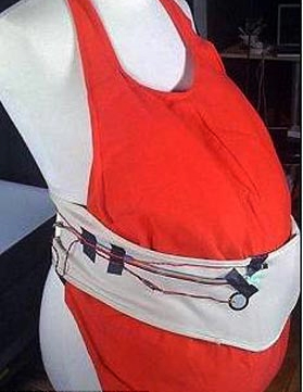“懷孕腰帶”可以監(jiān)控胎兒蹬踢母親腹部的頻率,并自動上網(wǎng)更新“胎兒博客”的日記內(nèi)容!疤翰┛汀比沼浀膬(nèi)容通常是:“12月17日:我在上午9:15踢了一下母親。”或者是:“12月17日:我在中午11:38又踢了一下母親……”