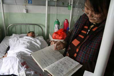 采訪時(shí),一個(gè)藥瓶的液體輸完了,宋玉華熟練地?fù)Q藥!耙胝疹櫤脙鹤,就得細(xì)心。我也覺得自己快變成半個(gè)醫(yī)生了!彼斡袢A笑著說(shuō)道。