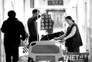 記者看到,急診科搶救室里里外外都躺著病人。病床上大多是滿臉憔悴的老年患者,他們被各種搶救儀器和親屬、子女們包圍著。而搶救室外的樓道里,還有四五位病人躺在臨時(shí)病床上輸液。此外,觀察室和監(jiān)護(hù)室外的樓道里也被加床患者擠滿了!皳尵仁摇⒂^察室、監(jiān)護(hù)室里連加床全都住滿了,”急診科值班大夫李南告訴記者,“我們實(shí)在沒辦法,只能在樓道里加床!笨墒橇硗庖粋(gè)問題又出現(xiàn)了,呼吸機(jī)、監(jiān)護(hù)儀都不夠用,患者用平車也被占滿了,一些重病號(hào)只能先坐著輸液。據(jù)了解,這些不得不在醫(yī)院里過年的患者主要是心腦血管病人和呼吸系統(tǒng)病人。