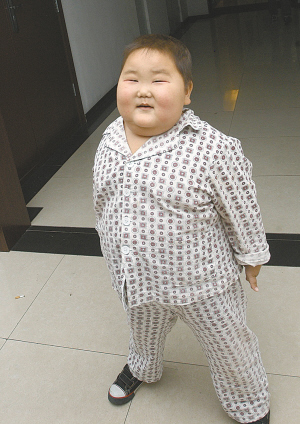 6歲的博博150斤重,眼睛瞇成了一條縫,走路都走不動(dòng)了,真的像電視劇里大頭娃娃一樣?墒撬麉s沒有大頭娃娃的快樂,胖成這樣是因?yàn)橐荒陙?lái)他因病吃激素所致,而這一切都源于他在5歲時(shí)不幸患上了腎病綜合癥。