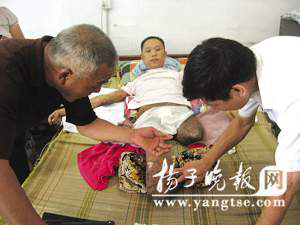 左邊臀部以下、右邊膝蓋以下已被截肢,全身都是燒傷的疤痕,但躺在床上的葛小勇并沒有像記者想象中的那樣頹廢,就在前往他家回訪的趙主任為他換藥讓他感覺疼痛時,他報以家人的卻是玩笑似的語言:“趙主任別把我當(dāng)是你,我怕疼”。簡簡單單的一句話讓屋內(nèi)所有人都相視而笑。