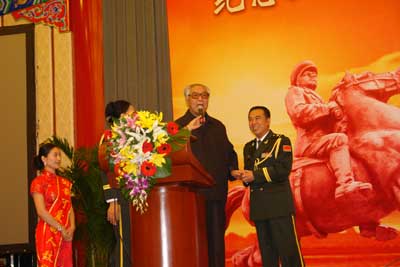 在熱烈的掌聲中,本次活動組委會顧問、中國人民解放軍上將劉精松發(fā)表了講話,他首先向中國人民志愿軍的卓越領導者彭德懷元帥、向在朝鮮戰(zhàn)場上流血犧牲的志愿軍將士致以崇高的敬意!向所有參加過抗美援朝的志愿軍老戰(zhàn)士、英雄的丹東人民和彭德懷元帥的親屬表示親切的問候!