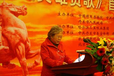 10月19日,由中國將軍書畫院、中共丹東市委、丹東市人民政府共同主辦的紀念抗美援朝勝利55周年暨彭德懷元帥誕辰110周年---《英雄贊歌》首發(fā)儀式在北京全國政協(xié)禮堂隆重舉行,來自解放軍各大單位及武警部隊的老紅軍、老將軍、志愿軍老戰(zhàn)士,彭德懷元帥的親屬和身邊工作人員以及社會各界代表共350多人出席了首發(fā)式。