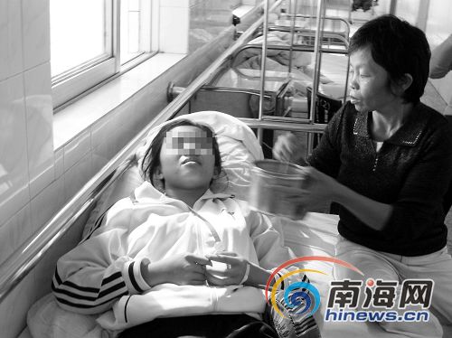 11月17日下午,記者在海南省農(nóng)墾總局醫(yī)院神經(jīng)內(nèi)科病房看到,阿霞的媽媽、姨媽和同學(xué)都在一旁照顧阿霞。阿霞目光呆滯,嘴里不時(shí)地喃喃自語說:“我好奇心強(qiáng),我要找知音陪我去逛街,我有好多話要說,我想找回我的記憶……”阿霞的媽媽和同學(xué)告訴記者,阿霞讀書很刻苦,成績(jī)都排在前幾位,她一直向往重點(diǎn)高中,還夢(mèng)想著考上重點(diǎn)大學(xué),考試總想要考第一。