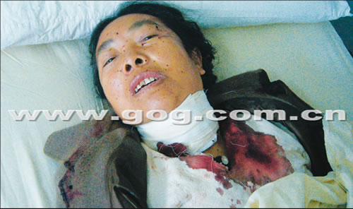 昨日下午,記者在貴醫(yī)附院看到了這名躺在病床上的老人。老人大約50多歲年紀(jì),女性,衣著較為整潔。接診護士告訴記者,老人剛被送到醫(yī)院的時候可以說話,但是問及家里的情況時,老人卻拒不回答。同時,護士還表示從老人的只言片語中聽到,老人說咽喉部位插的水果刀是她自己捅的。