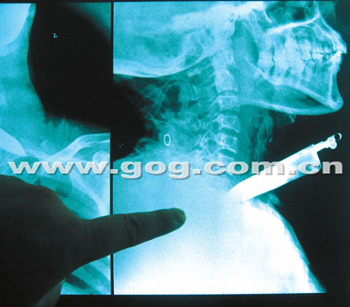 貴醫(yī)附院耳鼻喉科主治醫(yī)生王曉云告訴記者,老人被送到醫(yī)院時,喉嚨上插著一把水果刀,進入喉嚨的刀鋒部分大約有6.5公分。王曉云說:“經(jīng)檢查,老人頸部和肺尖受傷,生命垂危。由于水果刀可能傷到大動脈,手術(shù)有風(fēng)險,要求家屬簽字,但老人一直不透露家人的信息,我們醫(yī)院也很為難。”