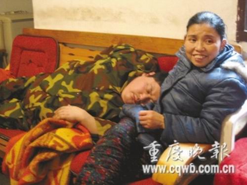 “亮亮,莫睡了,有人來看你了!鼻叭障挛,當(dāng)記者來到劉曉亮位于楊家坪街道天寶路的家時,他正在客廳木制沙發(fā)上酣睡。身穿迷彩服的他,若不是露出的一雙光腳板,記者還以為是堆在沙發(fā)上的一堆厚棉絮。