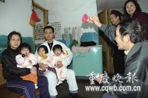 沙坪壩區(qū)的梁紅兵喜得三胞胎,娃娃長得一個比一個乖,這原是件讓人很羨慕的事,但在工廠當(dāng)裝配工的他卻因難以承受高昂的撫養(yǎng)費,與待業(yè)在家的妻子廖洪整日愁眉不展。