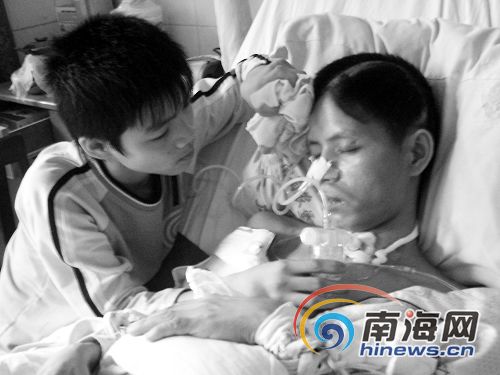 “其實(shí)當(dāng)時(shí)醫(yī)生也勸過(guò)我們放棄,但是只要還有一線(xiàn)生機(jī),我們還是想試一試!痹诟赣H昏迷時(shí),小鋒每天趴在父親的耳邊,和父親說(shuō)話(huà)!拔颐职值哪,他都沒(méi)反應(yīng),甚至掐他的手,他也沒(méi)喊痛,我急了就喊!庇谑,每天同病房的病友總能聽(tīng)見(jiàn)一位少年在呼喊:“爸爸,爸爸,你醒來(lái)吧,小鋒在這里,你睜開(kāi)眼睛,看看我吧!我以前不聽(tīng)話(huà),只要你醒來(lái),我以后都聽(tīng)你的,好好讀書(shū)!敝钡胶韲邓粏×耍′h的眼睛也哭腫了,也沒(méi)見(jiàn)父親醒來(lái)。一天又一天,小鋒一次又一次失望了。