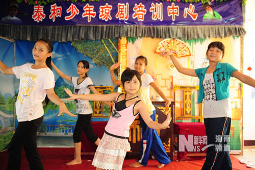 海南瓊海市退休教師王昱為傳承地方戲劇,用退休金義務(wù)創(chuàng)辦“泰和少年瓊劇培訓(xùn)中心”。他的義舉得到社會(huì)各界的支持和幫助,開班兩年多來有近百位孩子前來培訓(xùn)班學(xué)習(xí),學(xué)員當(dāng)中最大的15歲,最小的才4歲。參加培訓(xùn)的孩子常被邀請(qǐng)到各地演出,精彩的表演受到戲迷們的歡迎。培訓(xùn)班里的6名學(xué)員在一次全省瓊劇擂臺(tái)爭(zhēng)霸賽中,從1800名選手中脫穎而出,成功晉級(jí)50強(qiáng),其中兩人晉級(jí)8強(qiáng),10歲的符小玉憑借嫻熟的唱、念、做、打征服評(píng)委和觀眾,奪得大賽三等獎(jiǎng)。(新華網(wǎng)/蒙鐘德 攝)