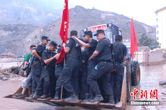 8月8日下午15時(shí),成都公安特警集結(jié)150人的隊(duì)伍從成綿高速成都入口處出發(fā),以摩托化開進(jìn)的方式,途經(jīng)成綿高速、綿廣高速出廣元昭化出口,上122國道經(jīng)青川、甘肅文縣、隴南市,經(jīng)過800公里連續(xù)18個(gè)小時(shí)的不間斷長途跋涉,首批隊(duì)伍共計(jì)80人于9日上午8時(shí)15分到達(dá)災(zāi)區(qū)舟曲縣城。第二批隊(duì)伍于9日15時(shí)許到達(dá)舟曲。