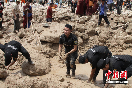 中新網(wǎng)舟曲8月9日電(劉賢 徐楊祎)成都公安特警兩批共150名救援官兵于9日先后到達(dá)甘肅舟曲災(zāi)區(qū)。救援官兵組織的35人青年突擊隊(duì)已協(xié)助武警和當(dāng)?shù)孛癖瘸?名遇困群眾,挖出兩具遇難群眾遺體。