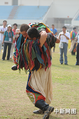中新網(wǎng)泉州10月31日電 (劉通)今天上午,第六屆全國農(nóng)民運動會在福建泉州繼續(xù)進行!安恕(蒙古族摔跤)雖是本屆農(nóng)運會中國式摔跤比賽中的一個小項,但卻極富觀賞性和趣味性。無論服飾、入場儀式還是比賽規(guī)則都帶有獨特鮮明的民族色彩。