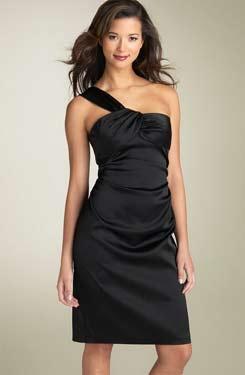 單肩——不對(duì)稱的美麗!配上胸部輕描淡寫(xiě)般的皺褶,無(wú)需更多修飾就很完美的一條小黑裙,但不適合肩膀?qū)挼呐恕?/p>