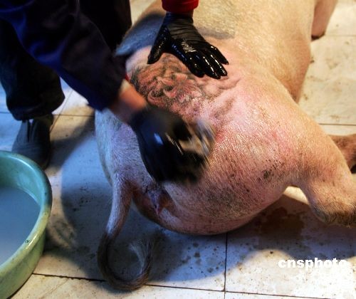 圖:藝術(shù)家給豬紋身 豬皮可賣百萬(2)