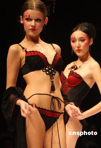 中國國際時裝周2009春夏系列發(fā)布在北京開幕。11月5日,中國國際時裝周(2009春夏系列發(fā)布)在北京隆重開幕,來自國內外的40多個知名品牌和時裝設計師以及150余位設計新人、時尚之星將在為期一周的時間里在北京飯店和D-PARK北京時尚設計廣場舉辦時裝發(fā)布、專項大賽、時尚論壇、新聞發(fā)布、專題講座、展覽展示等近70項活動。本屆時裝周發(fā)布的品牌和設計師主要來自國內和港、臺地區(qū),另有2家韓國品牌和設計師參與。時裝周期間將舉辦45場動態(tài)發(fā)布活動,其中,有36場時裝、成衣、化妝造型設計2009春夏系列趨勢發(fā)布。圖為開幕式上的內衣創(chuàng)新元素設計大賽。