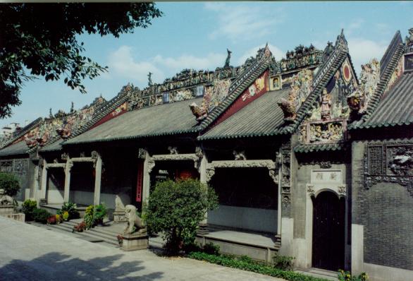 陳家祠堂建于光緒十六年----二十年間(1890-1894),由黎巨林設(shè)計(jì),是從前姓陳的廣州人用以供奉祖先的廟寺。其整個(gè)建筑巧奪天工,主要以其“三雕、三塑、一鑄鐵”而著稱,號(hào)稱“百粵冠祠”。