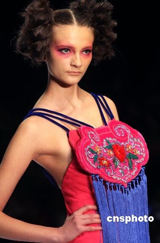 11月7日晚,中國(guó)國(guó)際時(shí)裝周上推出中國(guó)臺(tái)灣著名設(shè)計(jì)師蔡美月婚紗專(zhuān)場(chǎng)秀,蔡美月多年以來(lái)堅(jiān)持不抄襲、仿冒,不局限于華麗的范疇,融入更多時(shí)裝化概念,將時(shí)尚流行色彩、線條剪裁和婚紗結(jié)合。