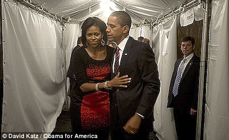 制造歷史前的片刻,奧巴馬在發(fā)表勝選講演前與妻子擁抱。